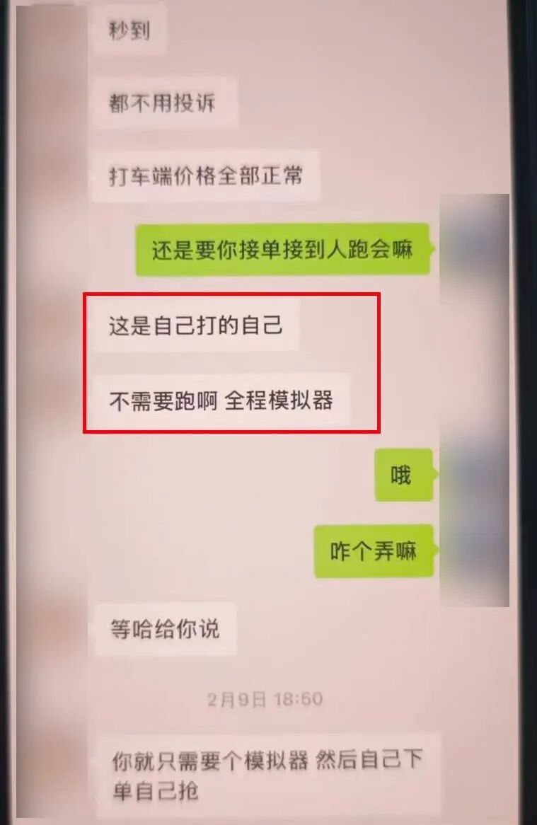 “全程模拟器”“自己下单自己抢”“速度设置四百码,十分钟跑完了”……警方进一步查明,涉案司机共有两种牟利手段。一种是基于真实订单,通过故意不结束订单,修改行驶轨迹和里程虚增费用。另一种为虚构订单,如杨某、谭某等人干脆虚构“一口价”订单,通过“自发自抢”的方式,直接使用软件恶意延长路程,这才出现了“9分钟完成1000公里”的荒唐情形。