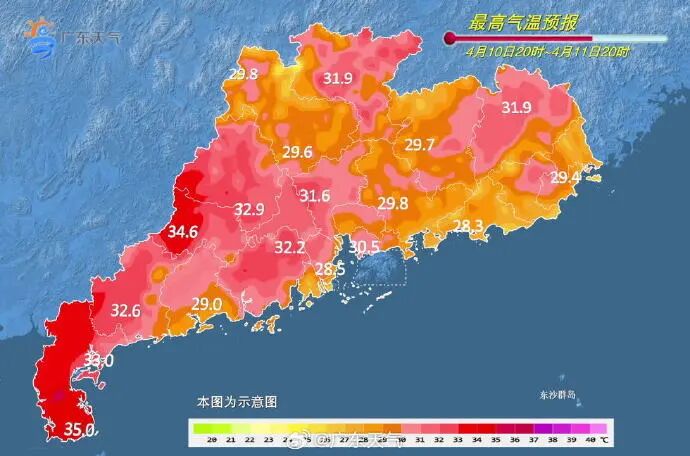 据@广东天气 预计,10-12日,广东大部市县和中东部近海海面多云间阴天,早晚有轻雾局部有雾,体感闷热;其中,雷州半岛最高气温34~36℃,粤西北多(雷)阵雨,局部雨势大。