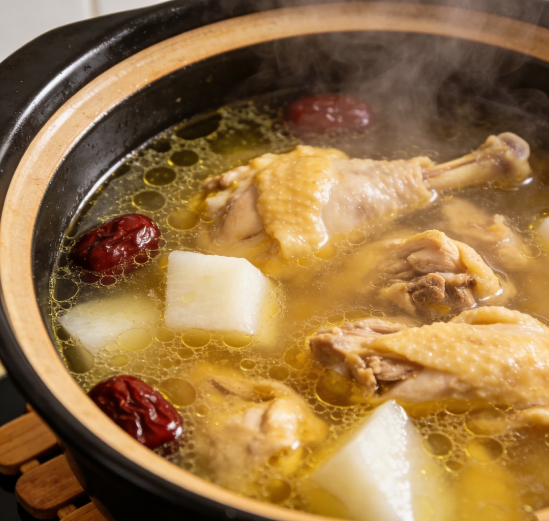 广东人常说无鸡不成宴。从白切到盐焗,从啫啫到煲煲,一只鸡在广东能变出一百种滋味。而懂行的“老广”都知道,鸡煲的最高境界,是汤肉兼得,药食相融。