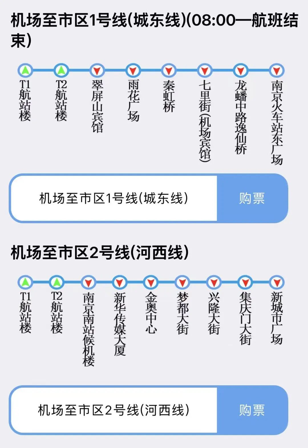 3.免费市域大巴:南京机场1号线或2号线车票一张;