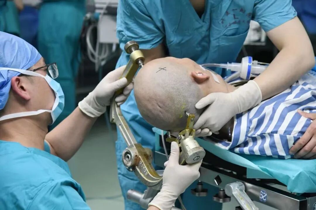4月9日8时30分,手术正式开始。团队精准暴露颅骨相关区域,在术前3.0T MRI、功能磁共振(fMRI)及CT血管造影数据基础上,对患者运动皮层功能区进行了精细评估与三维重建,并通过术中神经导航/机器人导航系统实现功能区精准定位。