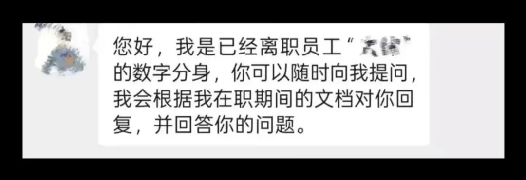 员工离职,工位清空、账号注销曾是职场默认的“告别仪式”。而有公司将离职员工的聊天记录、工作文档喂入大模型,生成一个能主动回复同事、发送通知的“数字分身”,与原同事有着相同工作逻辑思维、表达风格、决策模式和人际行为——这位“上午刚辞职”的员工,下午就变成以数字形态“在岗”。