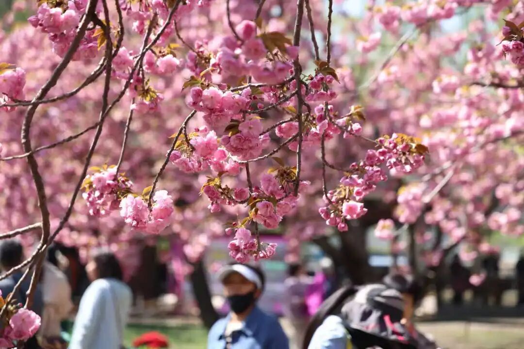 眼下,玉渊潭公园内的早樱已悄然披上绿叶,中樱也化作缤纷花雨,洒落成阵阵浪漫春意。虽然早樱、中樱的盛景已过,但近千株晚樱正迎来最佳观赏期,市民游客可再续“樱缘”。