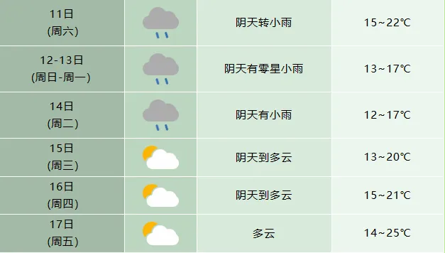 我市11-14日有降雨过程