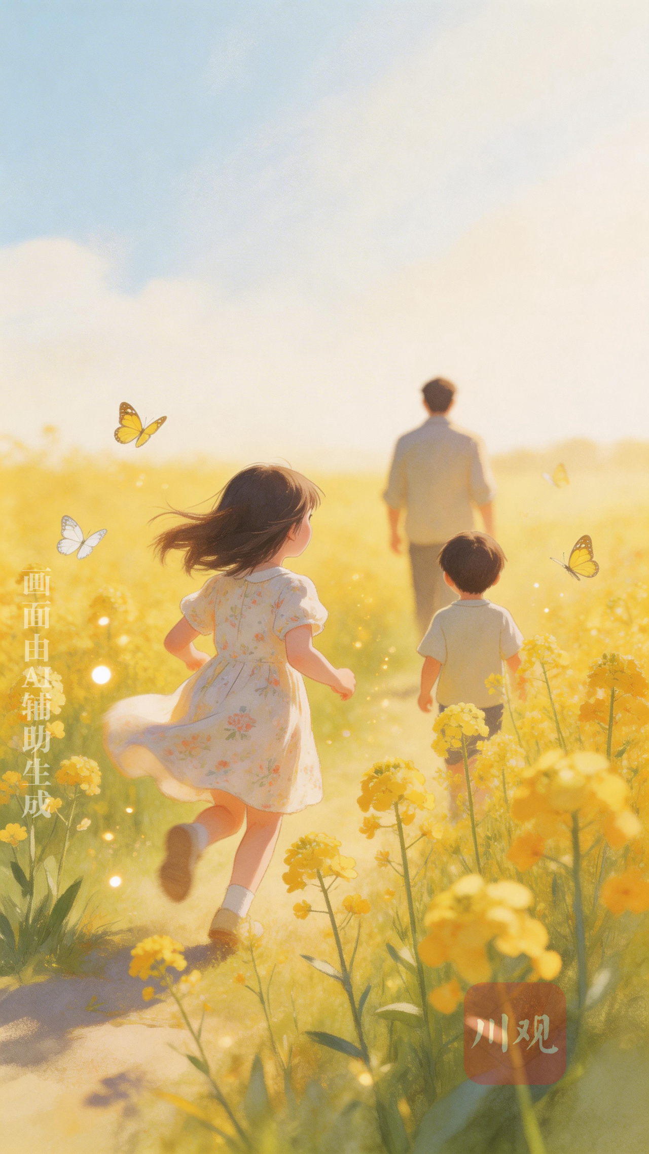 那时的这个季节,油菜花同样肆意铺展在家乡温柔起伏的原野。花香漫天,时浓时淡,在空气中暗暗浮动。四周静谧安然,小蜜蜂在花间翩翩飞舞,嗡嗡嗡嗡地哼个不停,声音时远时近,更衬得周遭格外宁静。我和弟弟在前,爸爸在后面,缓缓行走在暖阳下的花田,宛如海中朝着明确目标悠游而去的鱼儿。我们话不多,但心中满是欢喜,只因在原野另一端不远处,妈妈同样满心欢喜地等着我们回家。天地间格外通透明澈,仿佛极远处也能看到妈妈的笑颜。