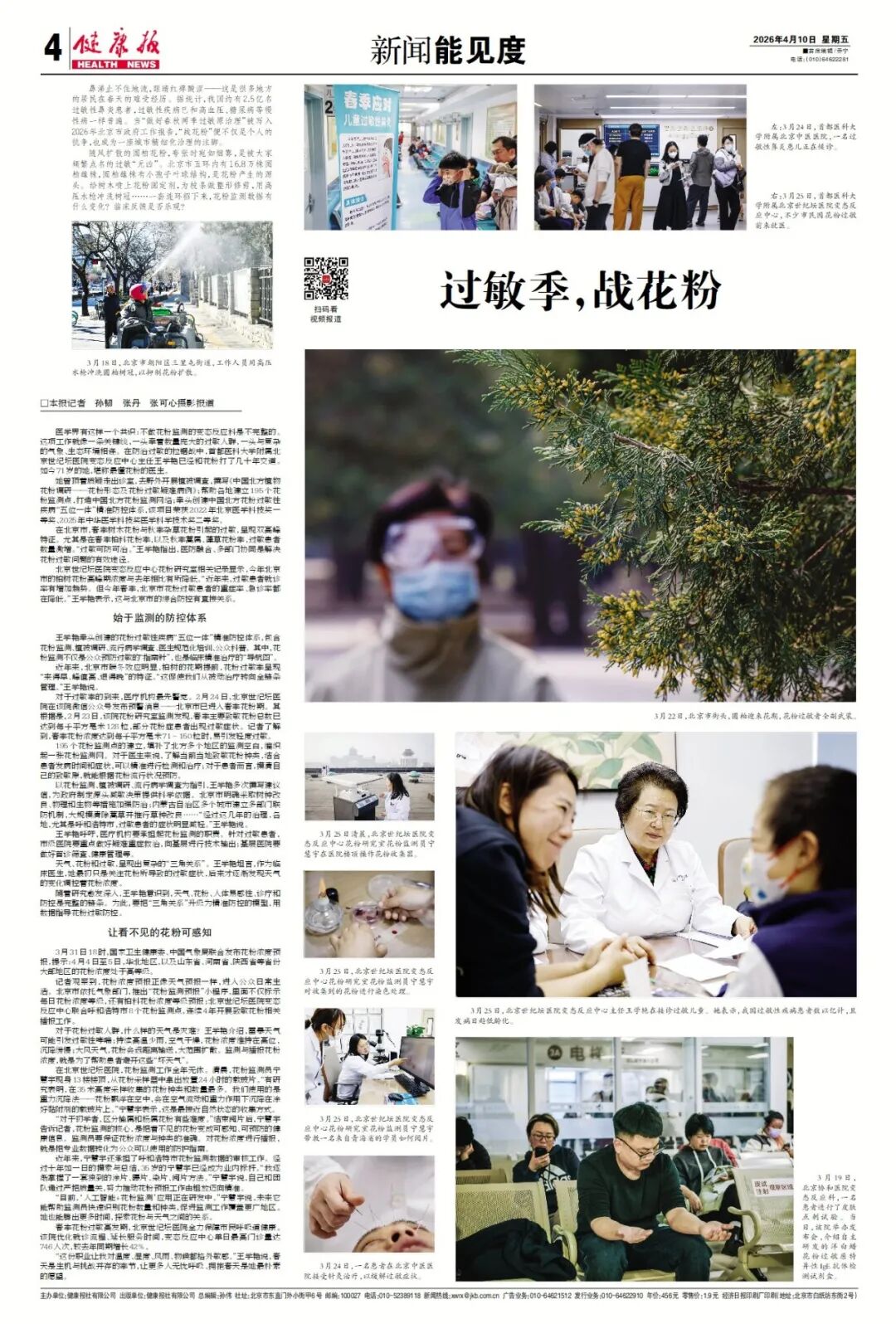 鼻涕止不住地流,眼睛红痒酸涩——这是很多地方的居民在春天的难受经历。据统计,我国约有2.5亿名过敏性鼻炎患者,过敏性疾病已和高血压、糖尿病等慢性病一样普遍。当“做好春秋两季过敏原治理”被写入2026年北京市政府工作报告,“战花粉”便不仅是个人的抗争,也成为一座城市精细化治理的注脚。