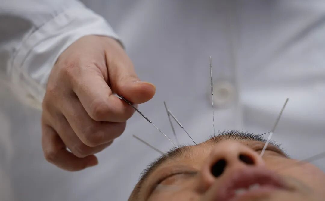 3月24日,一名患者在北京中医医院接受针灸治疗,以缓解过敏症状。