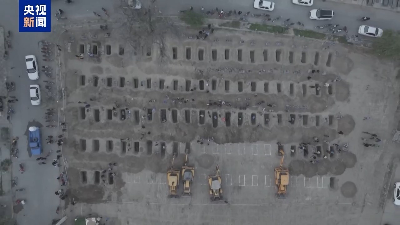 △3月3日,米纳卜的一片空地上,大量工人正在为死者准备墓地。