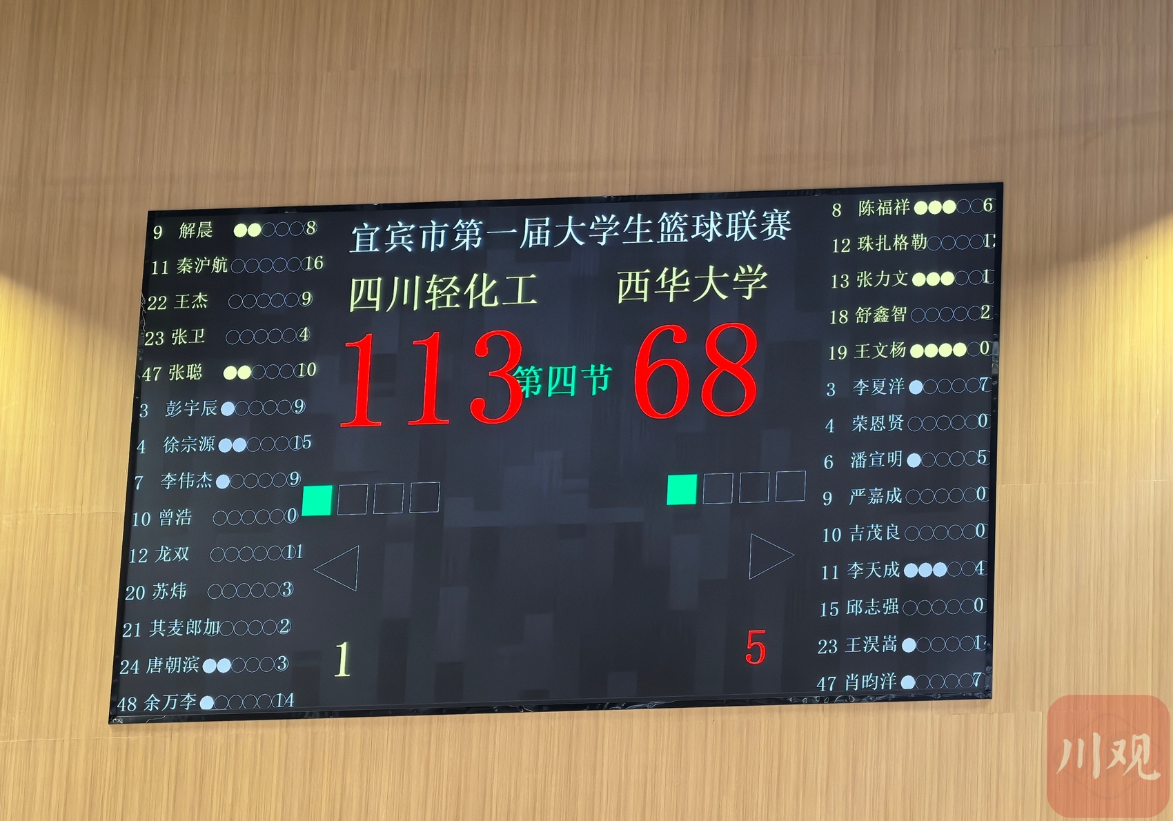 赛场上,双方球员迅速进入状态,运球、突破、传球、投篮,动作一气呵成。四川轻化工大学的队员们配合默契,多次打出快速反击,场上比分交替上升,现场呐喊声、加油声此起彼伏,气氛热烈。经过四节激烈角逐,最终四川轻化工大学队以113:68的比分战胜对手,取得“开门红”。