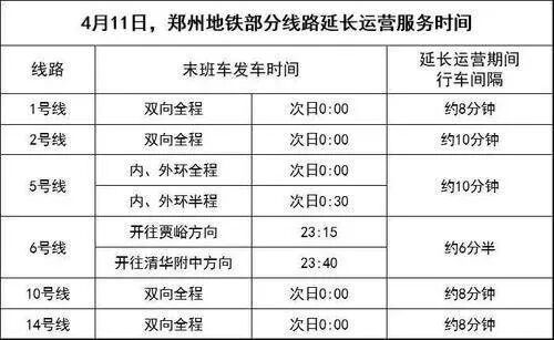郑州地铁根据活动客流特点,科学调整行车组织,对线网运能进行优化配置。4月10日、11日、12日,线网部分线路将延长运营服务时间,精准保障乘客出行需求。