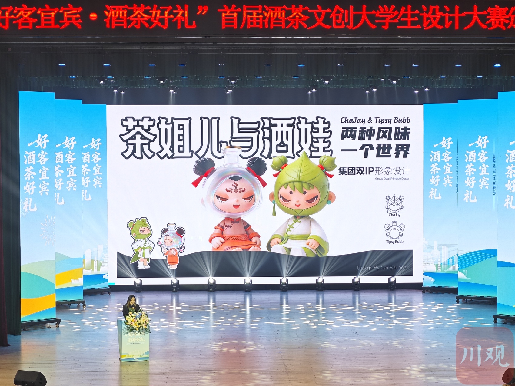 “我的双IP设计‘酒承千年韵,茶迎四海宾’,灵感源自宜宾“酒茶同源”的文化特质,以及深受大众喜爱的哪吒文化。”集团双IP形象设计一等奖获得者、四川轻化工大学研三学生蔡郁陶表示,“我将哪吒形象融入到茶、酒设计,希望通过年轻人的视角,让传统酒茶文化更具亲和力与传播力。”她透露,未来将与企业合作深化设计,推动作品落地转化。