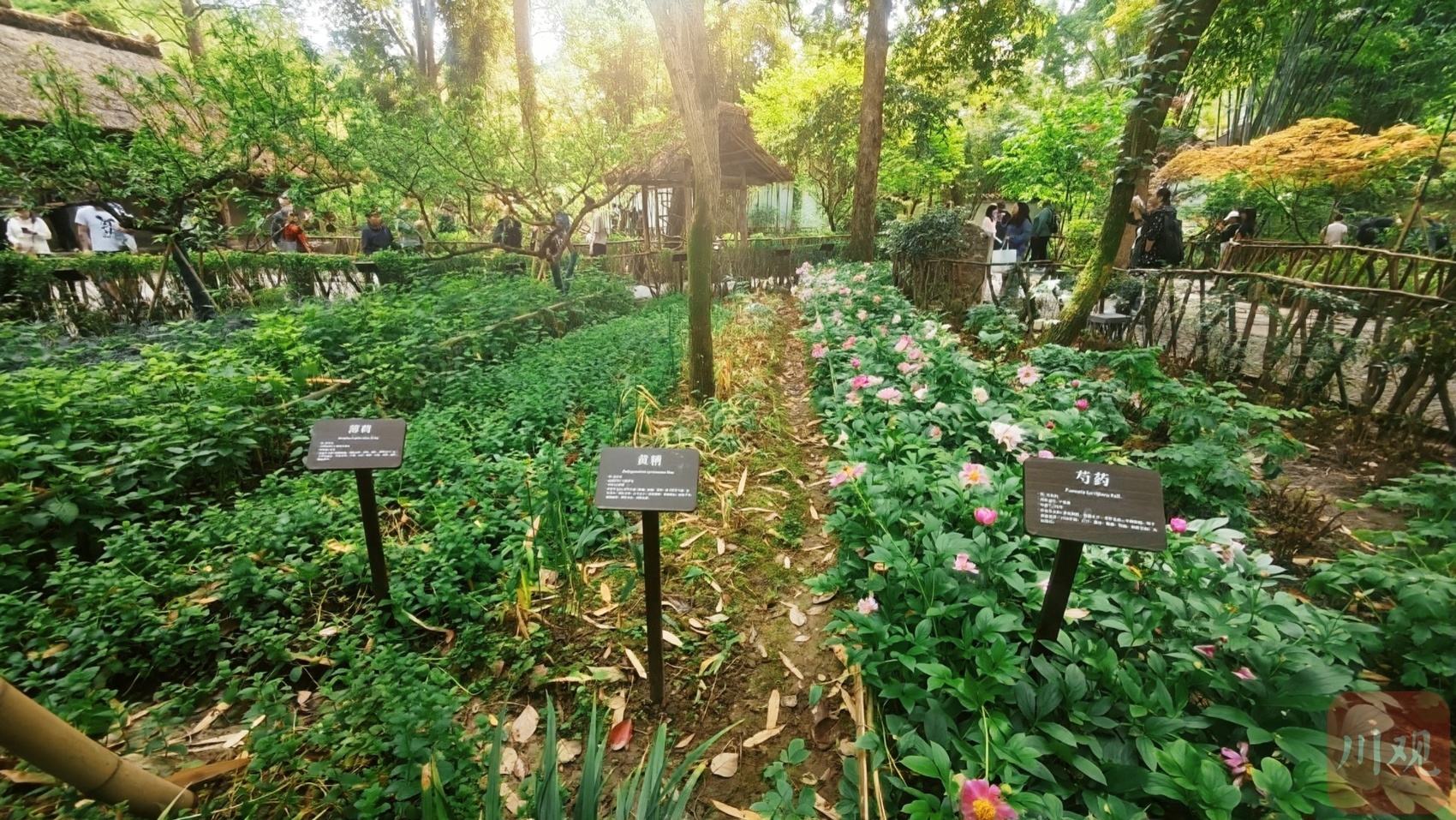 谁能想到,诗圣杜甫还是个“资深药农”?史料记载,当年杜甫因肺痨、风湿等顽疾缠身,就在草堂茅房前开辟药圃,自种黄精、芍药等药材,“扫除白发黄精在”“多病所须唯药物”,诗句里全是和中医药的深厚羁绊。如今这片药圃里,粉白芍药开得正盛,薄荷、黄精等本草长势喜人,不少中外游客都专程来打卡诗圣当年的“自留地”。