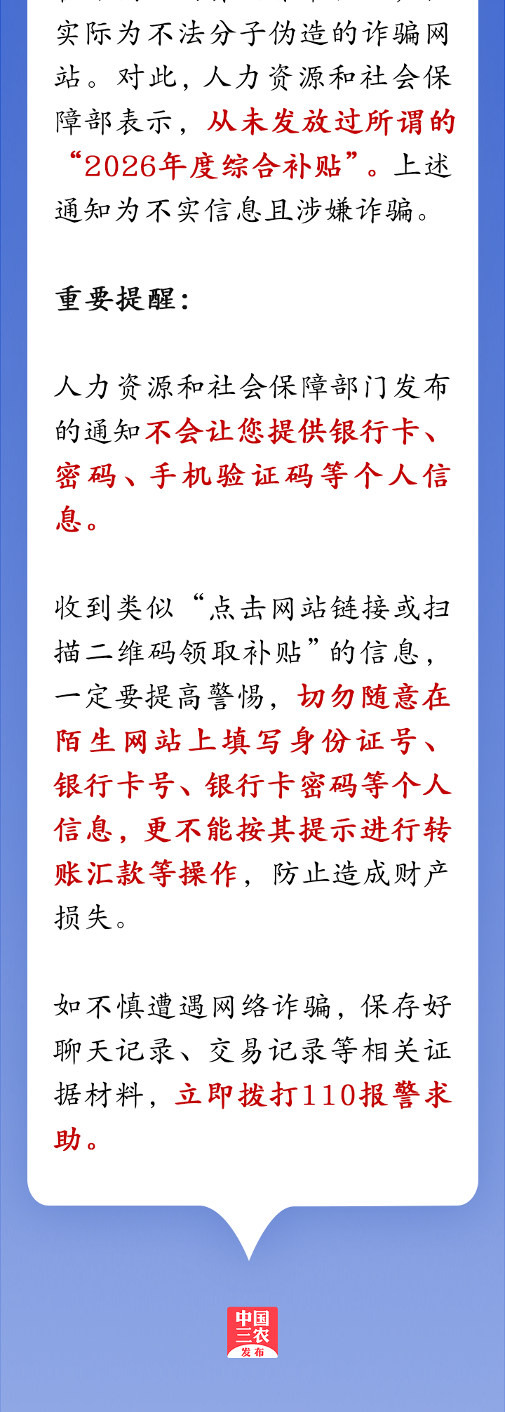 来源丨“人力资源和社会保障部”微信公众号、互联网联合辟谣平台、“公安部网安局”微信公众号、“成都网络辟谣”微信公众号、“都江堰水务”微信公众号、科学辟谣微信公众号