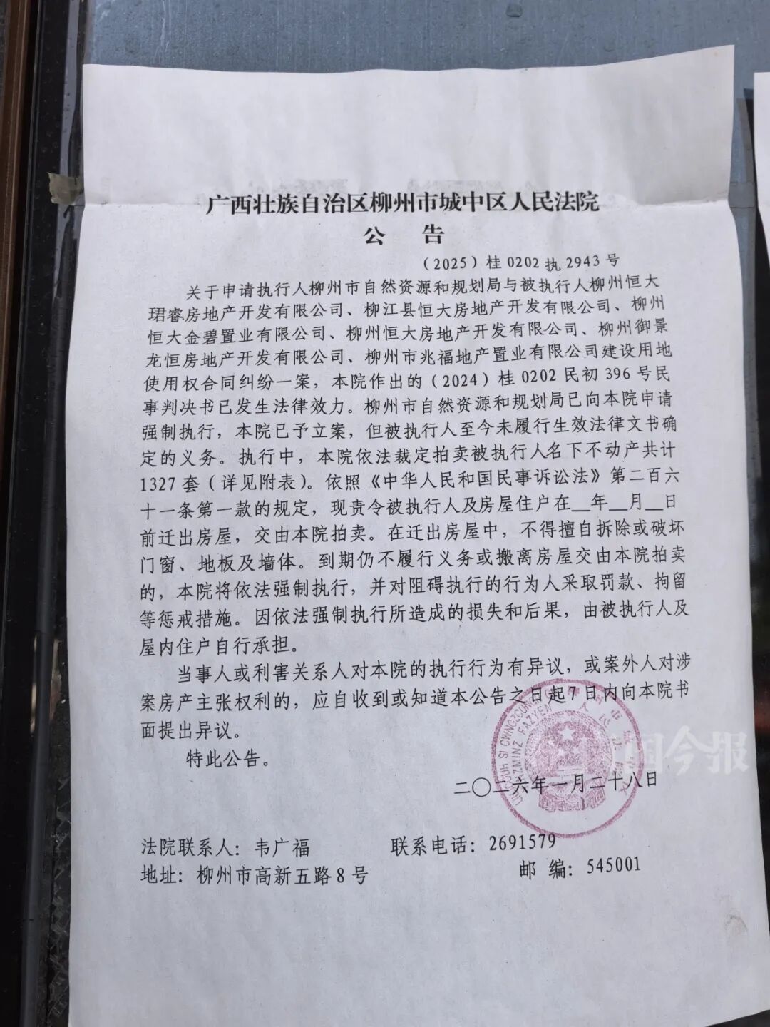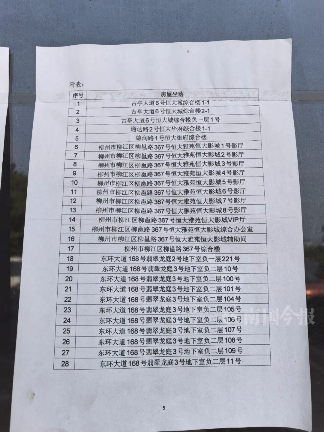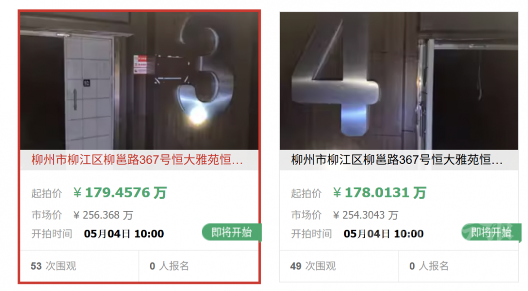 就在大家唏嘘不已时,记者了解到,恒大集团在柳州已上架阿里司法拍卖平台的不动产中,将于5月初开拍的不仅有位于柳邕路367号恒大雅苑的恒大影城,还包括位于古亭大道6号的恒大城综合楼、通达路2号恒大华府综合楼、德润路1号恒大御府综合楼等房产。