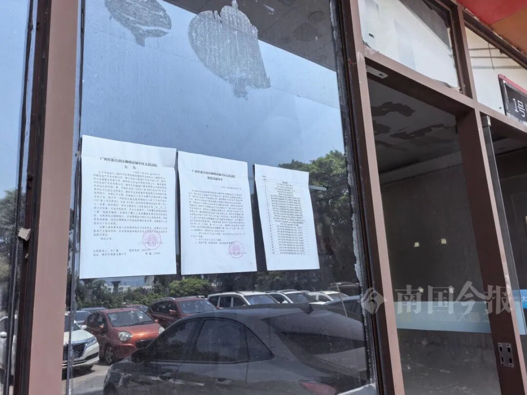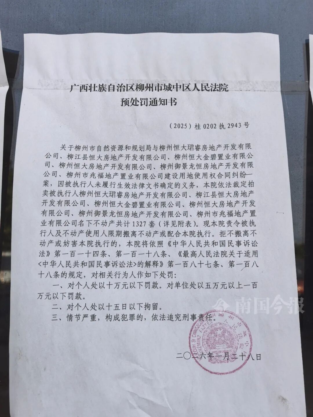 记者留意到,玻璃大门上张贴着法院的公告、预处罚通知书及其附表,落款日期为2026年1月28日。