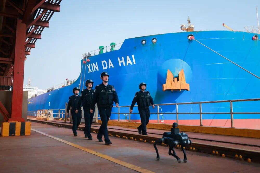 2026年4月2日,山东边检总站董家口边检站启用四足机器人开展港区巡查,以科技强警提升管控效能。