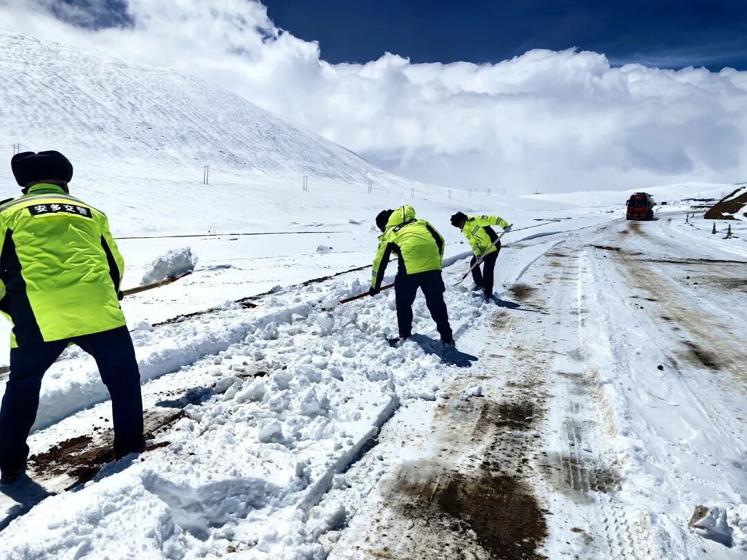 4月10日,那曲市安多县辖区持续遭遇降雪天气,安多县前往唐古拉山一带降雪更为明显,导致路面大面积结冰、出现大范围路冻情况,给过往车辆和群众出行带来严重安全隐患。面对严峻形势,安多县公安局闻雪而动,全警投入、24小时不间断值守,以坚实守护保障道路畅通和群众安全出行。