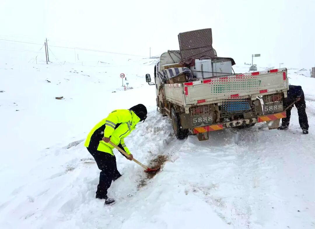 “唐古拉山垭口海拔超5200米,降雪后风力常达7级以上,路面结冰形成‘隐形陷阱’,极易引发车辆打滑、滞留甚至交通事故。”交管大队负责人介绍,大队提前备足融雪剂、防滑沙、铁锹、拖车绳等保通装备,以及氧气瓶、抗高反药品等应急物资,确保每辆巡逻车都成为“移动保通站”。同时,与安多县气象局、公路养护部门建立实时联动机制,每小时同步更新天气和路况信息,精准调整巡逻频次和值守重点。
