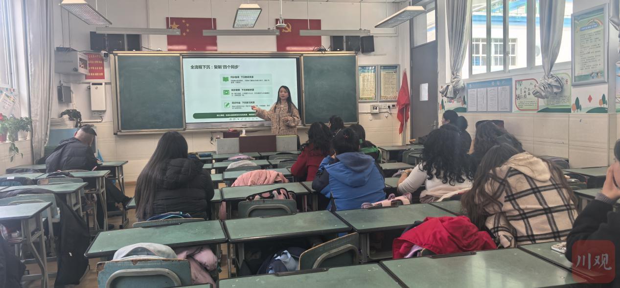 在康定市东大街小学,甘孜州电教馆业务教师分享教学帮扶策略。
