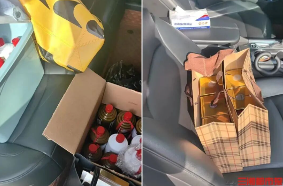 民警从嫌疑人车中查获的假冒名酒及空酒瓶。通讯员供图