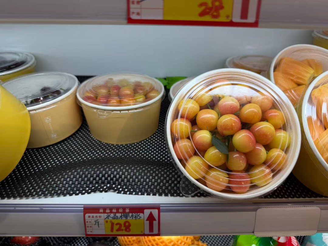 零售端的价格更能体现“尝鲜”的成本。在河西一家精品水果店,水晶樱桃被精心摆放在冷藏柜中,精品果标价为每公斤256元。盒马鲜生的货架上,4J规格大连美早樱桃250克售价49.9元,折合每公斤199.6元,即便是果径较小的J级果,也要每公斤119.6元。“这个价格比去年刚上市的智利车厘子还贵,但国产樱桃新鲜度高,口感更脆甜,我准备少买点尝尝鲜。”正在选购的市民李女士说。
