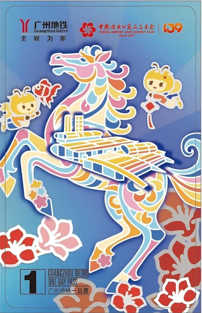 本次主题日票票面设计融合了广交会吉祥物、琶洲展馆、广州地标建筑、广州地铁列车及马年生肖等元素,生动展现广州的商贸活力与城市风采,打造兼具实用性与纪念意义的城市名片。