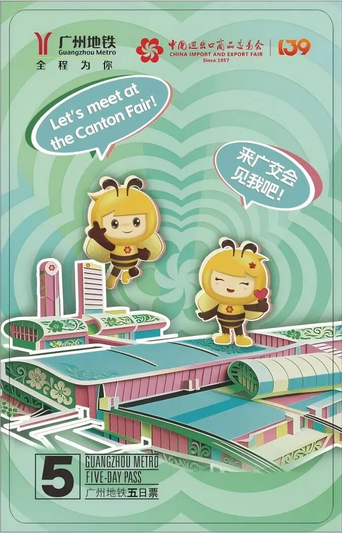 广交会期间,广州地铁将推出广交会系列主题日票,包含主题一日票、主题三日票及第139届广交会限定主题五日票三款: