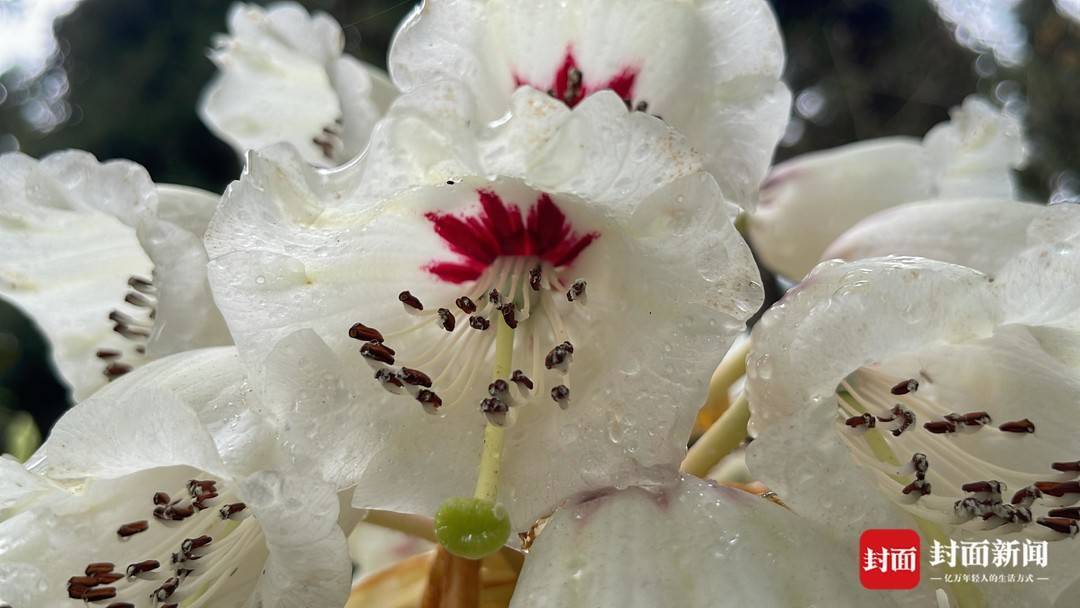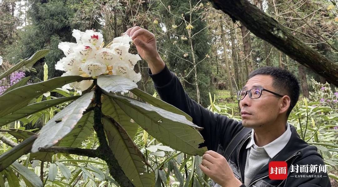 许多人都是第一次亲眼见到凸尖杜鹃。王飞、邵慧敏这些研究人员,在图片上倒是见过不少,不过,真正的花朵他们都是第一次见。当天,还有一群来自云南、南京、成都等地的十多名植物爱好者、学者组成的观花团来到保育园观花,他们幸运地看到了盛放的凸尖杜鹃。冯女士是“追花人”中的一员,今年3月初,她特意前往云南观花,那里的凸尖杜鹃还是花苞,原本计划在花期再次前往,现在不需要了。“今天就看到了!”