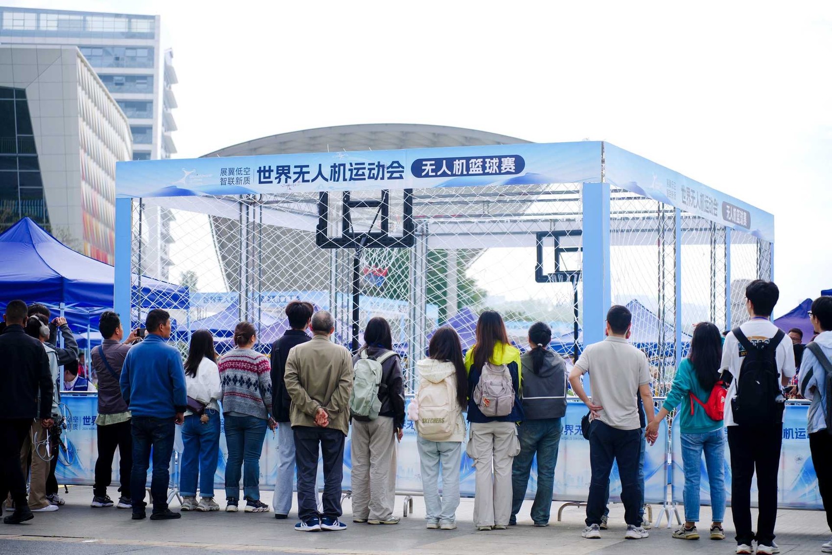 当天率先启动的高新赛场上,无人机举重、击剑和篮球等赛项依次举行,吸引不少人驻足观看。“举重和击剑是难点项目。”方黎勇说,举重项目主要考验两架飞行器在狭小空间内的协同控制与精准操作能力,击剑项目则侧重飞行器对周边目标的精准识别、定位以及操控水平。此外,篮球赛主要在多机协同与操作精度基础上,强化互动性与观赏性,展现技术与体育融合的应用潜力。