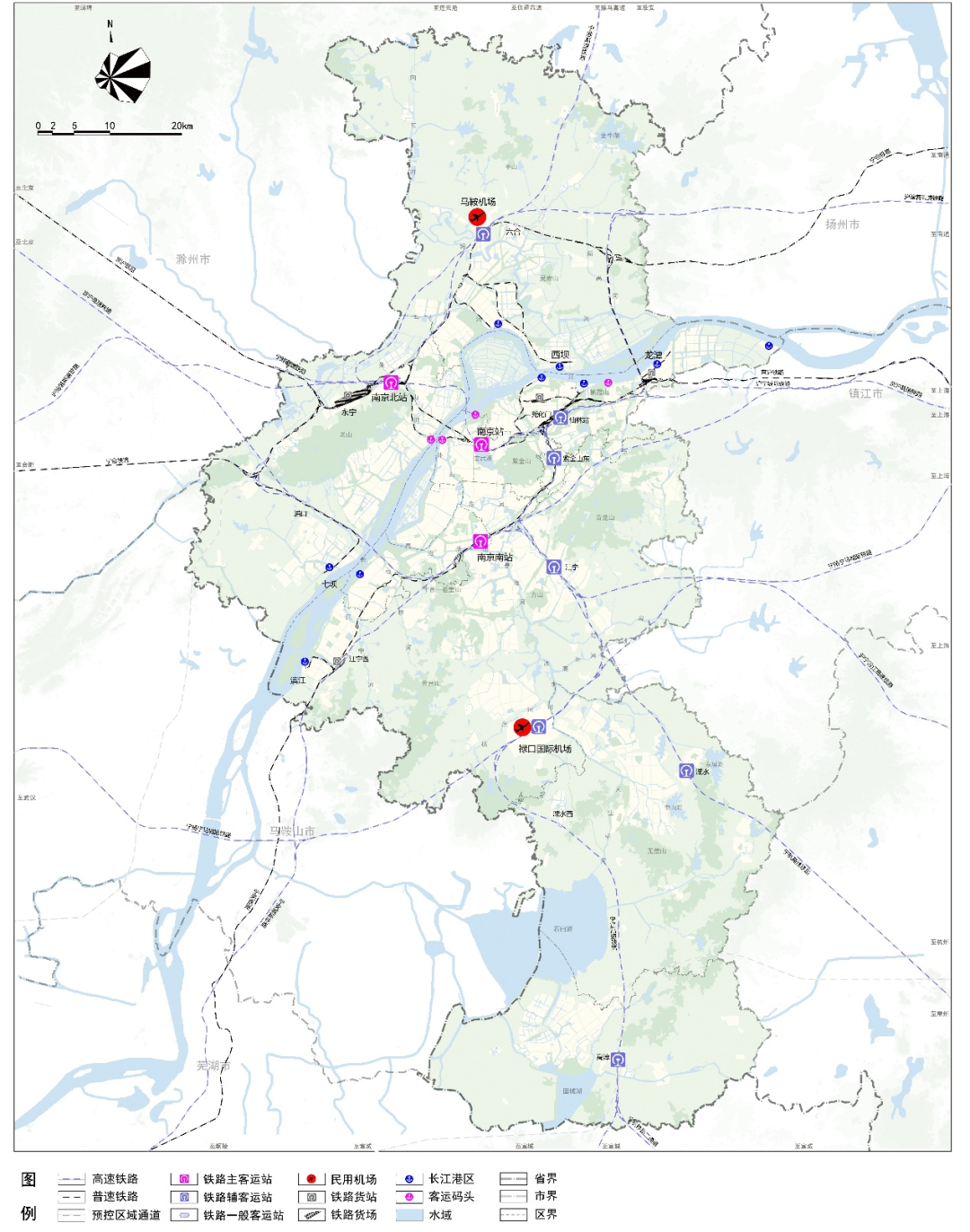 规划构建“一主一辅、五个通用机场”格局,重点提升禄口国际机场的综合交通换乘能力,完善马鞍机场配套功能;同时布局高淳定埠、溧水和凤、栖霞龙潭、浦口老山、六合龙袍5座通用机场。
