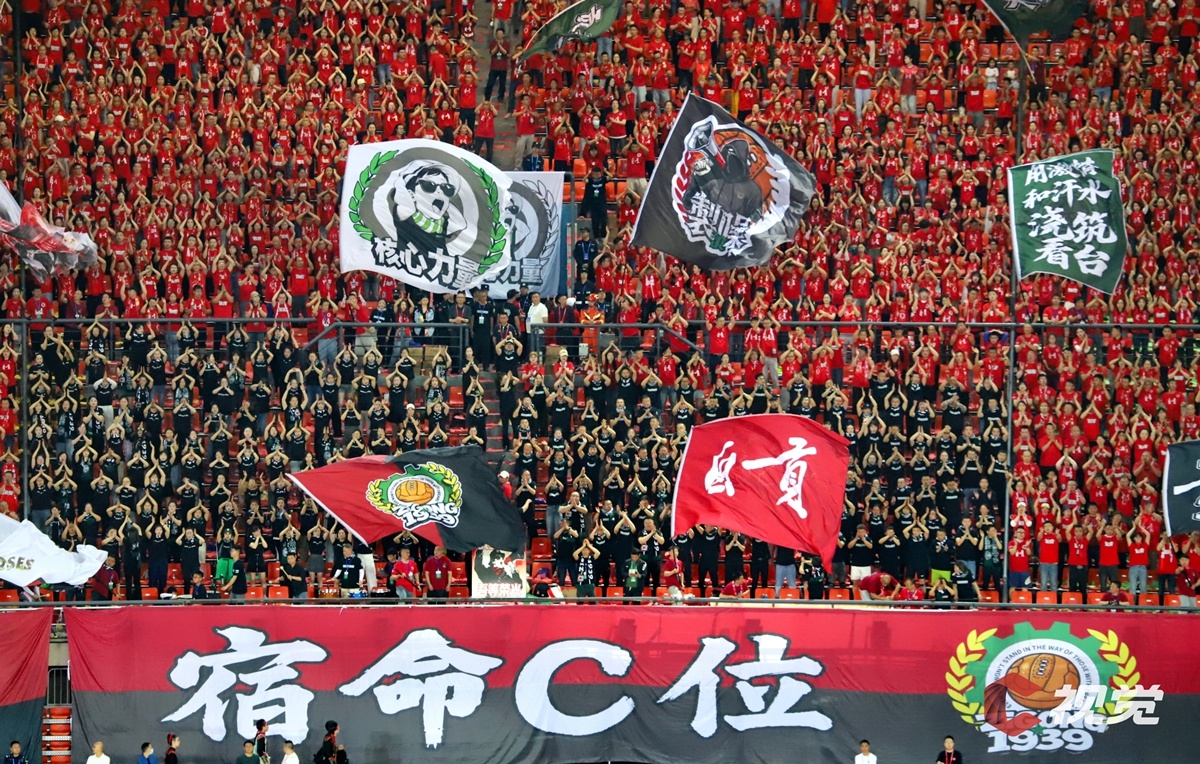 4月11日,“川超”决赛阶段第五轮迎来备受瞩目的“南北”对决,自贡灯城燊龙队坐镇自贡南湖体育中心,迎战绵阳九洲长虹队。图为最强“第十二人”呐喊助威。C视觉签约摄影师 李秋玥 摄