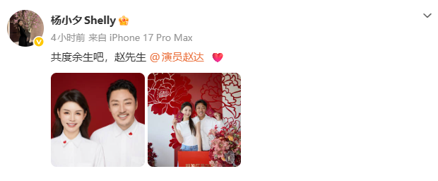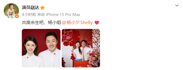 据现代快报,4月11日,演员赵达在社交媒体宣布结婚。