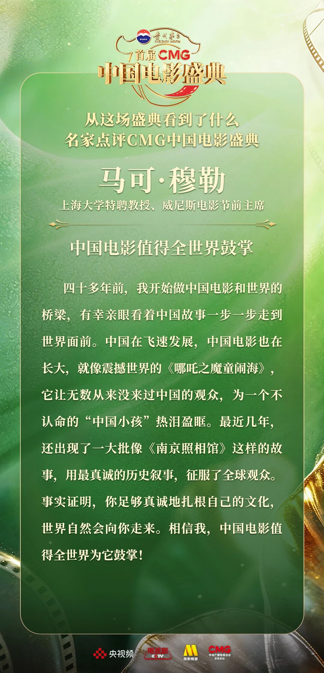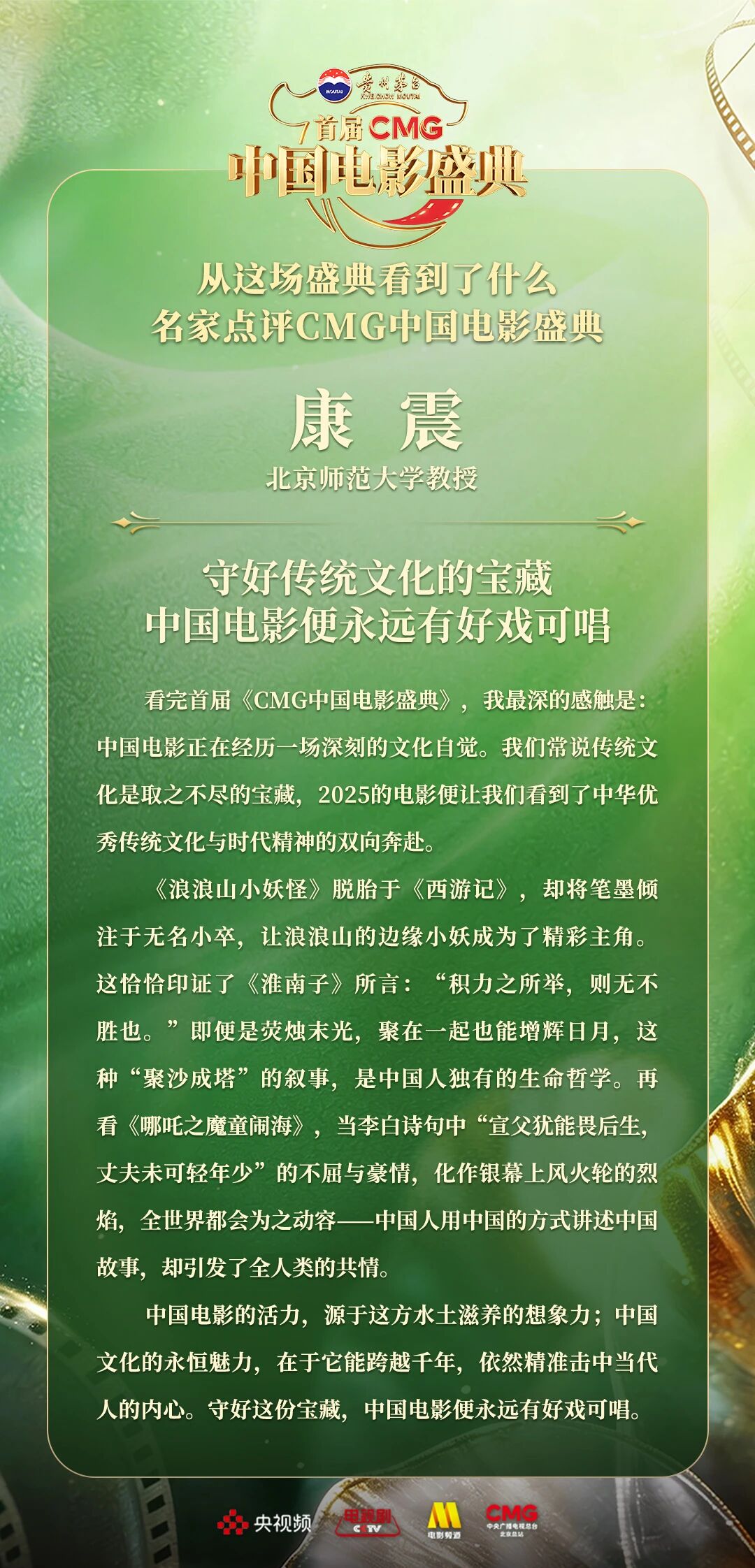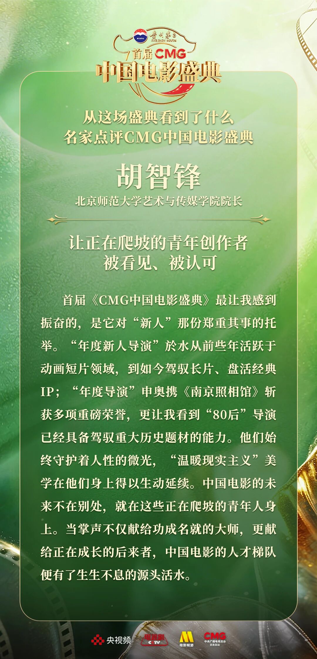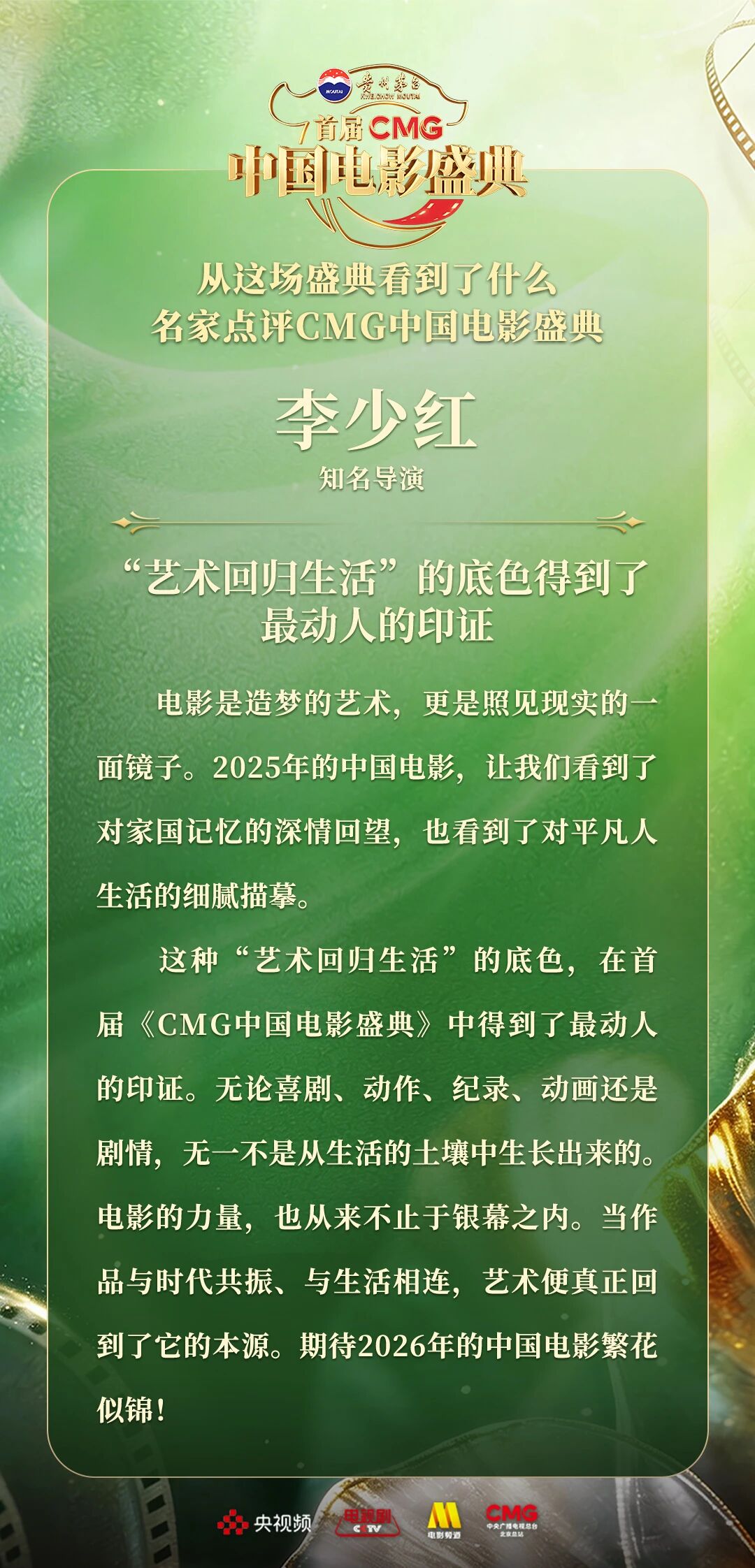 一二一向前走!以电影之名汇聚力量,相约春天!4月10日,由中央广播电视总台视听新媒体中心、影视剧纪录片中心、电影频道节目中心、北京总站共同推出的首届《CMG中国电影盛典》踏春而来,如期绽放。这场献给所有热爱电影之人的春日之约,聚焦“电影+”生态,首次从“电影类型”角度梳理、观察、致敬中国电影。一项项沉甸甸的荣誉,让每一位电影人的热爱都被看见、被铭记。中国电影百花齐放的蓬勃生机,也激荡起众多专家学者由衷的热议与回响。