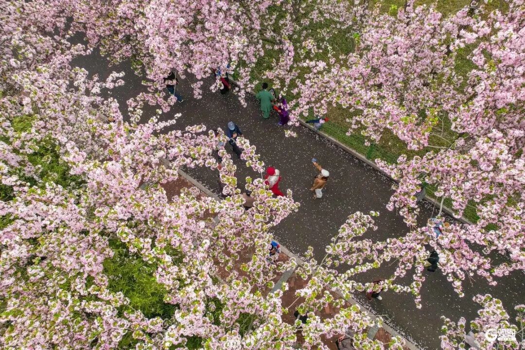 在浪漫的粉色“海棠大道”漫步,
