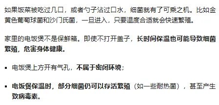 饭菜保温太久有什么危害?吃不完的米饭应该如何储存?电饭煲还有哪些易藏匿细菌的地方?来看首都医科大学附属北京朝阳医院感染和临床微生物科副主任李冉怎么说↓
