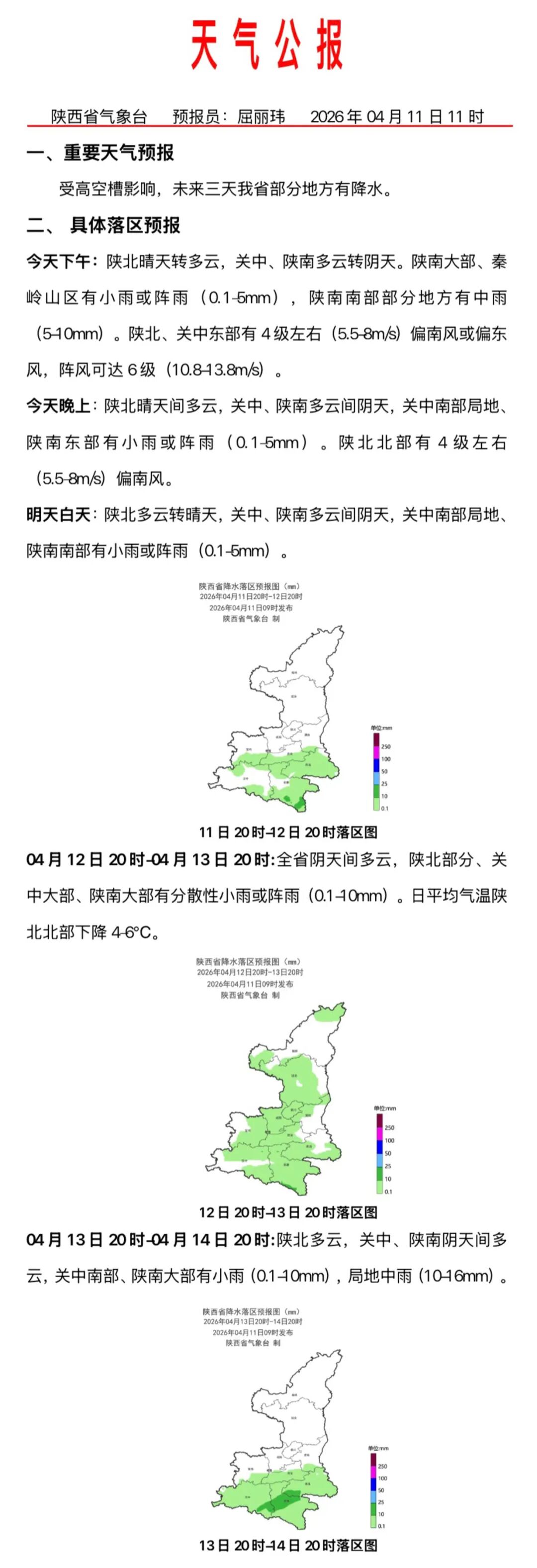 受高空槽影响,未来三天陕西省部分地方有降水。