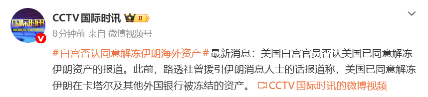 美国白宫官员否认美国已同意解冻伊朗资产的报道。此前,路透社曾援引伊朗消息人士的话报道称,已同意解冻伊朗在卡塔尔及其他外国银行被冻结的资产。