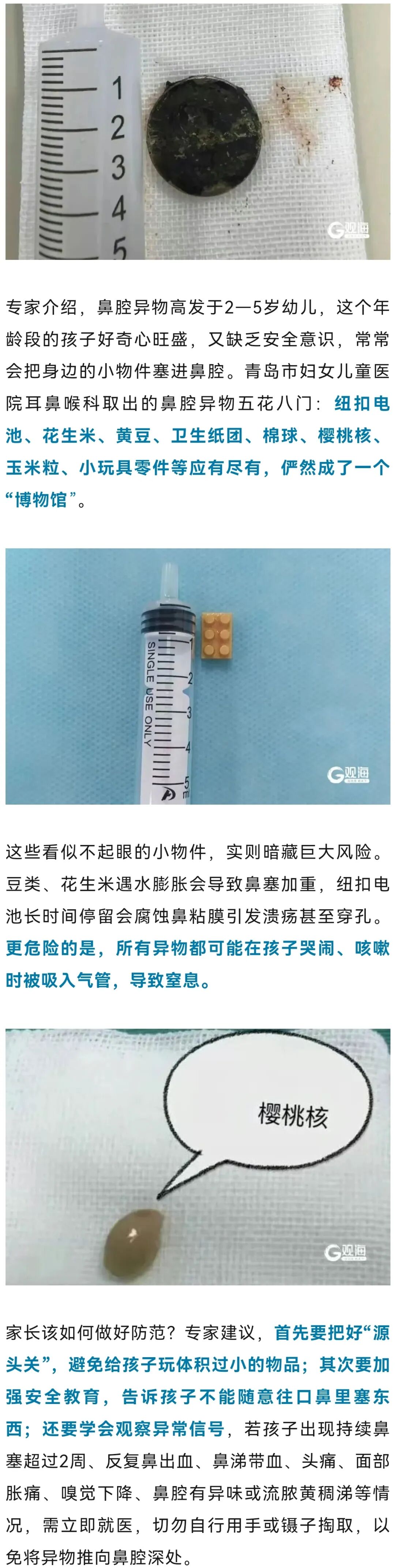 仅一小时后,急诊室又迎来一位一岁多的小患儿。家长焦急地说,孩子趁大人不注意,把玩具上的塑料圆片塞进了鼻孔。由于孩子哭闹挣扎,异物在鼻腔内来回滑动,不仅增加了取出难度,更随时可能被吸入气管引发窒息。好在耳鼻喉科医生凭借丰富经验,最终化险为夷。