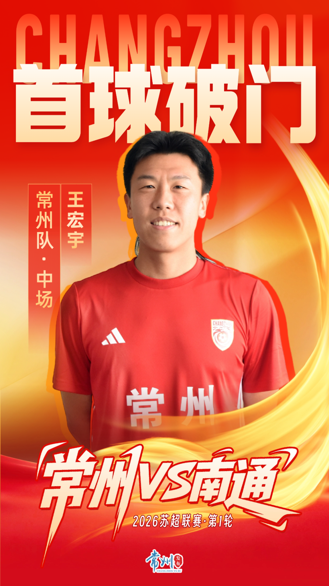 常州队8号王宏宇踢进一球