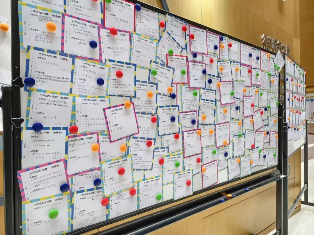 卡片上还有很多中学生的学习困惑“数学和物理怎么对我好一点?”“化学到底要怎么学?”“大学压力大吗?”