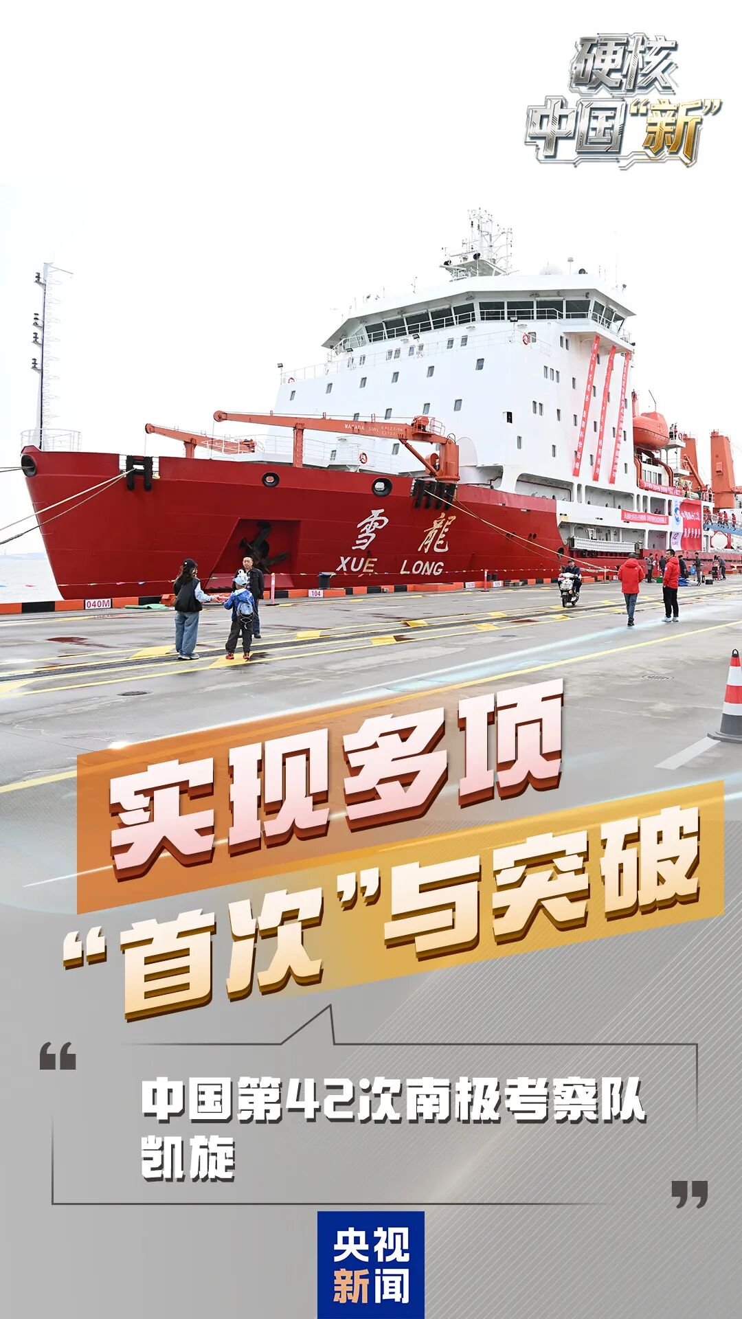 4月9日,中国第42次南极考察队暨“雪龙”号极地考察破冰船顺利返回国内并停靠中国极地考察国内基地码头,考察队按计划顺利完成各项任务。此次考察在考察人员规模、常规物资量和任务量等方面再创新高,取得丰硕考察成果。