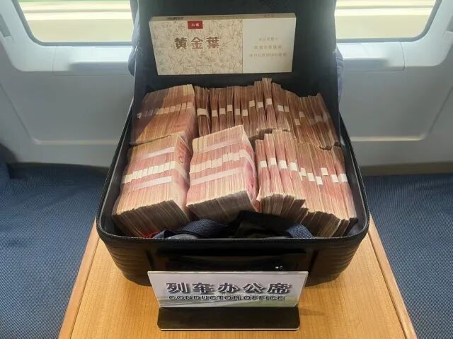 打开行李箱的一瞬间,高铁乘警管天和列车长张蕊都倒吸了一口凉气。工作多年,从没在列车上见过这么多的现金,一沓又一沓,57万元塞满了整个行李箱!