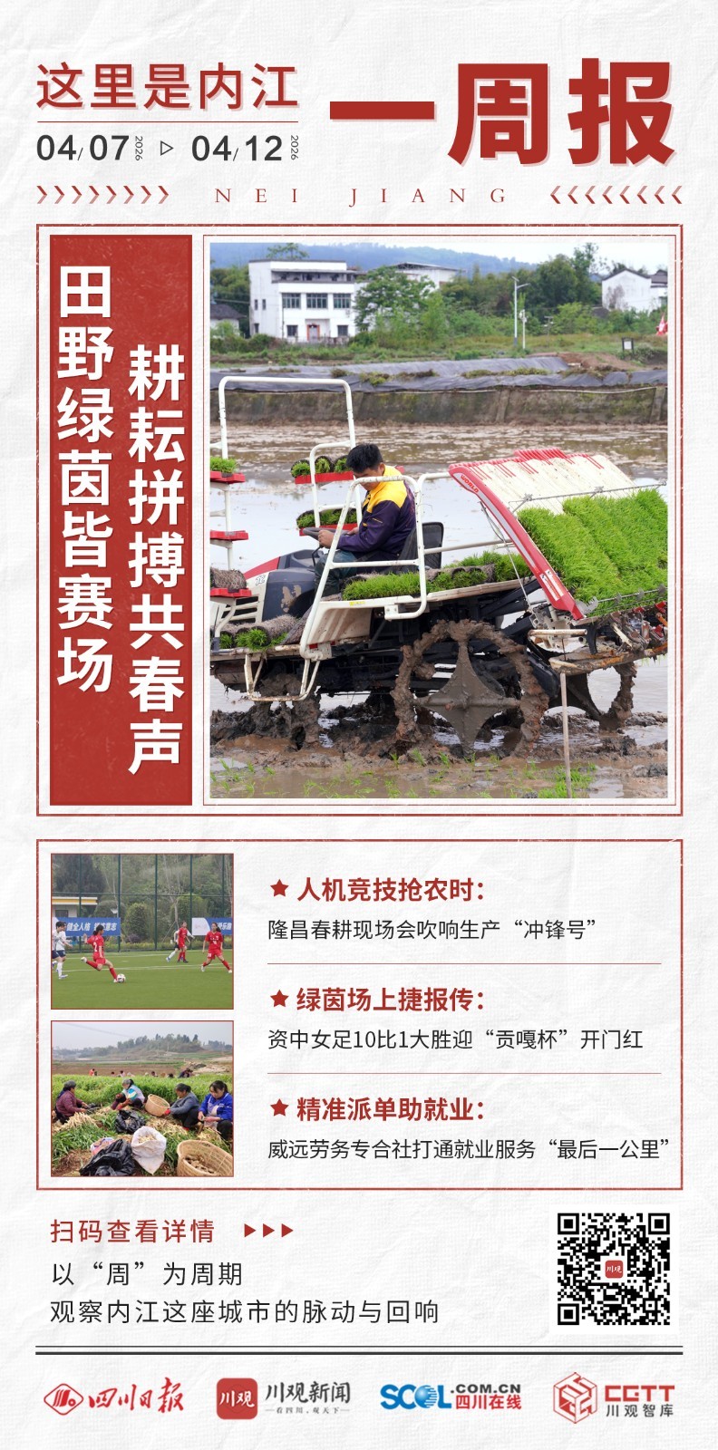 春风拂过沱江两岸,甜城大地处处涌动着耕耘与奋进的热潮。从隆昌田间上演的“人机大战”,到资中女足在“贡嘎杯”赛场上的酣畅胜利,再到威远劳务专合社精准派单助力群众就业,本周的内江,田野、绿茵、就业等多个维度交相呼应,在实干中耕耘希望,在拼搏中收获信心。
