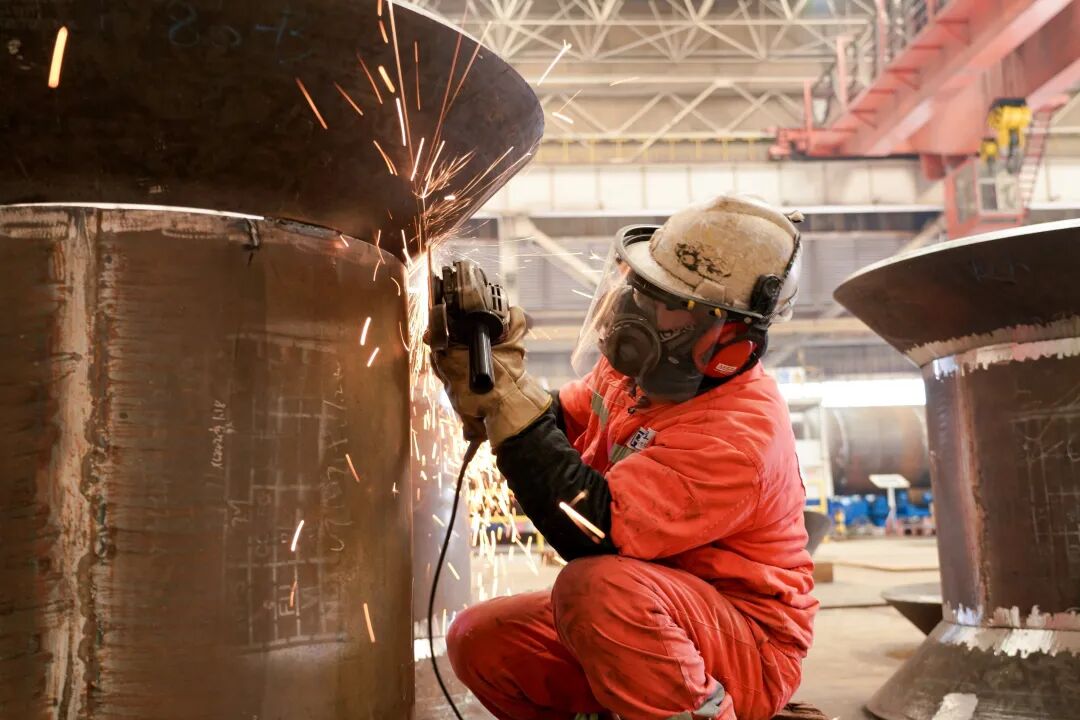 我国首个海上注碳增气技术示范应用项目海上平台开工建造,图为现场施工场景。中国海油供图