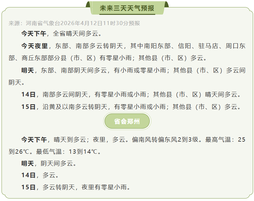 预计下周我省气温先降后升→明后两天(13至14日),一股冷空气将影响我省,气温会短暂下降,15日后气温又将回升,17日起多地最高气温或将达到30℃。