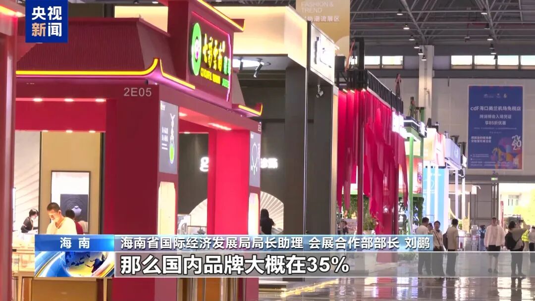 海南省国际经济发展局相关负责人:目前来看,我们整体展品国际化率较去年提升20%,国际品牌占比大概65%,国内品牌占比大概35%,很多国内的品牌,产品也出海了。