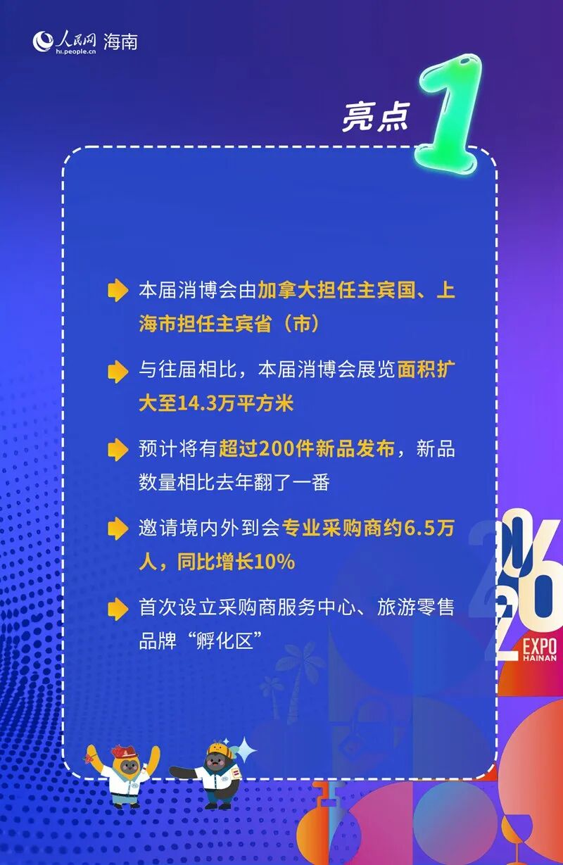 据了解,本届消博会展览面积达14.3万平方米,较上届增加了1.3万平方米,届时,将有来自60多个国家和地区的超过3400个品牌参展。同时,消博会期间还将举办“购在中国”系列促消费主题活动。