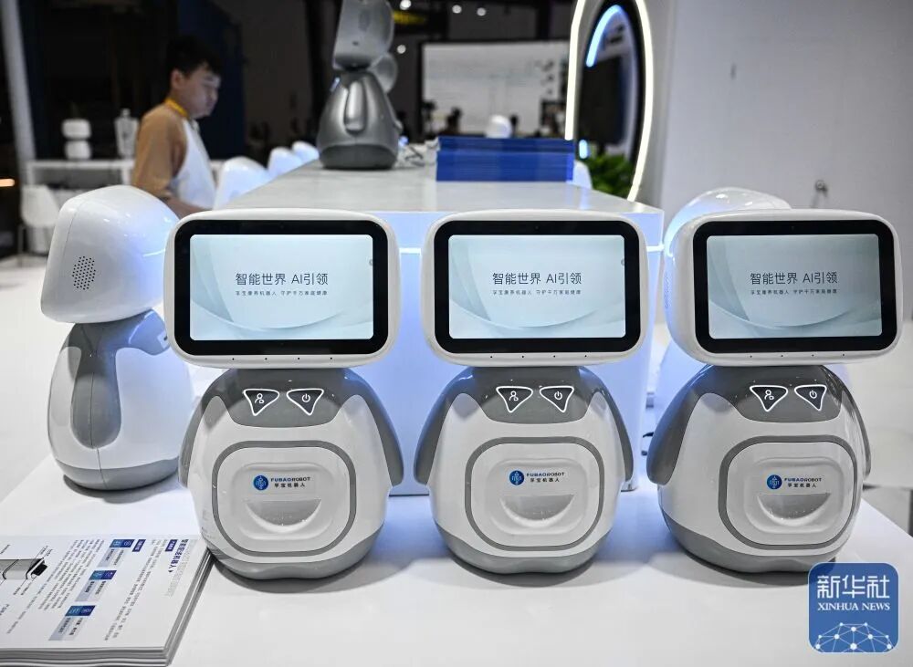 4月11日在第六届消博会主会场拍摄的康养陪伴机器人。新华社记者 蒲晓旭 摄