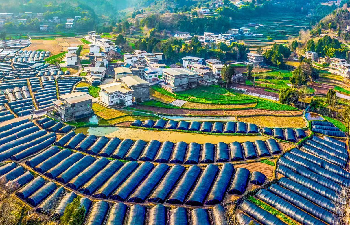 通江县新场镇标准化食用菌栽培大棚纵横交错