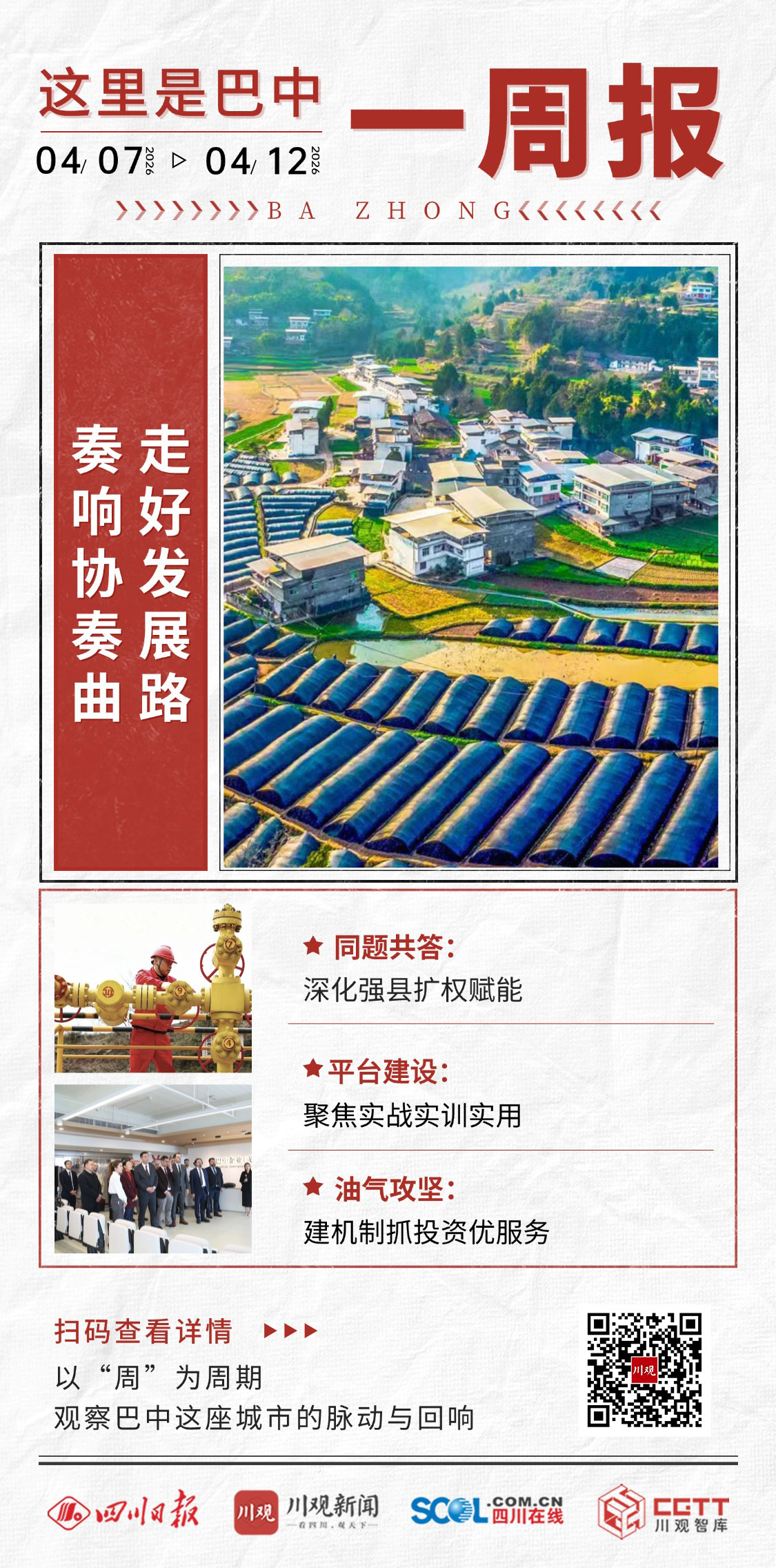 4月7日至12日,又一周过去,巴中围绕高质量发展这一中心任务,动作频频、蹄疾步稳,本周的一周报让我们从一场改革工作会议、一次平台建设调度会议、一次攻坚专题会议来看老区巴中如何加快前进步伐、如何奏响发展协奏曲。